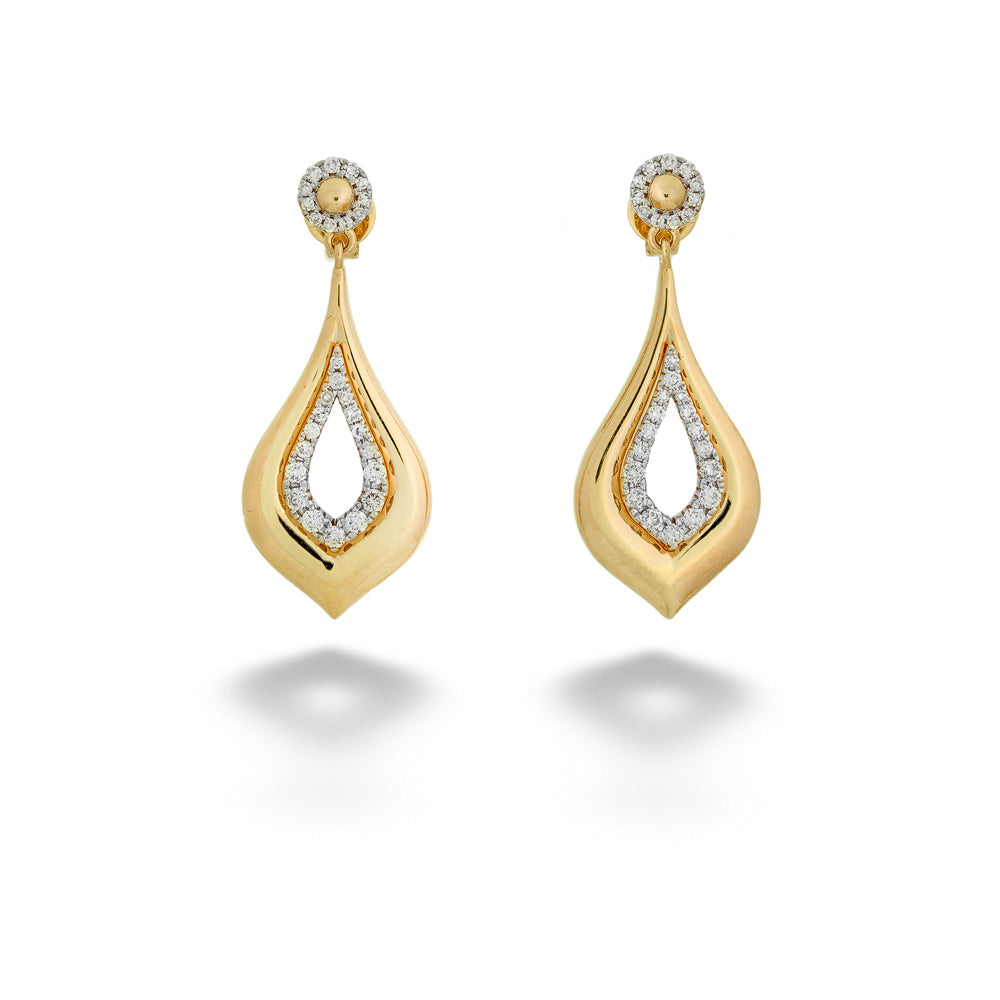 Graceful movement and radiant sparkle come together in these elegant Mixed Metal Diamond Drop Earrings. Crafted in a sophisticated blend of 14K yellow gold and 14K white gold, the fluid teardrop silhouette creates a striking contrast between warm gold tones and shimmering diamond accents. Each earring is adorned with 0.45 total carat weight of I color, SI clarity diamonds, delicately set to enhance light and brilliance with every turn.