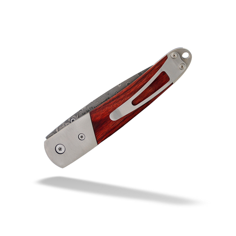 The Damascus Steel 4" Knife with Mammoth Molar and Mother of Pearl by Santa Fe Stoneworks is a masterful blend of prehistoric beauty and modern precision. Its handle features striking sections of authentic mammoth molar, paired with luminous mother of pearl for a truly captivating contrast. The patterned Damascus steel blade adds strength and visual depth, while the smooth liner lock mechanism provides reliable, one-handed operation. At 4 inches, this knife is both functional and collectible, embodying Santa Fe Stoneworks’ renowned craftsmanship.